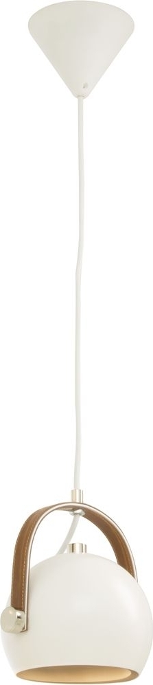 Deckenlampe aus weißem Metall mit Details aus Kunstleder. Einfache Deckenaufhängung.