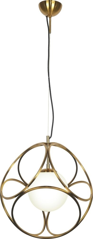 Deckenlampe aus Metall mit antikem Messingdesign und weißem Glas. Einfache Deckenaufhängung.