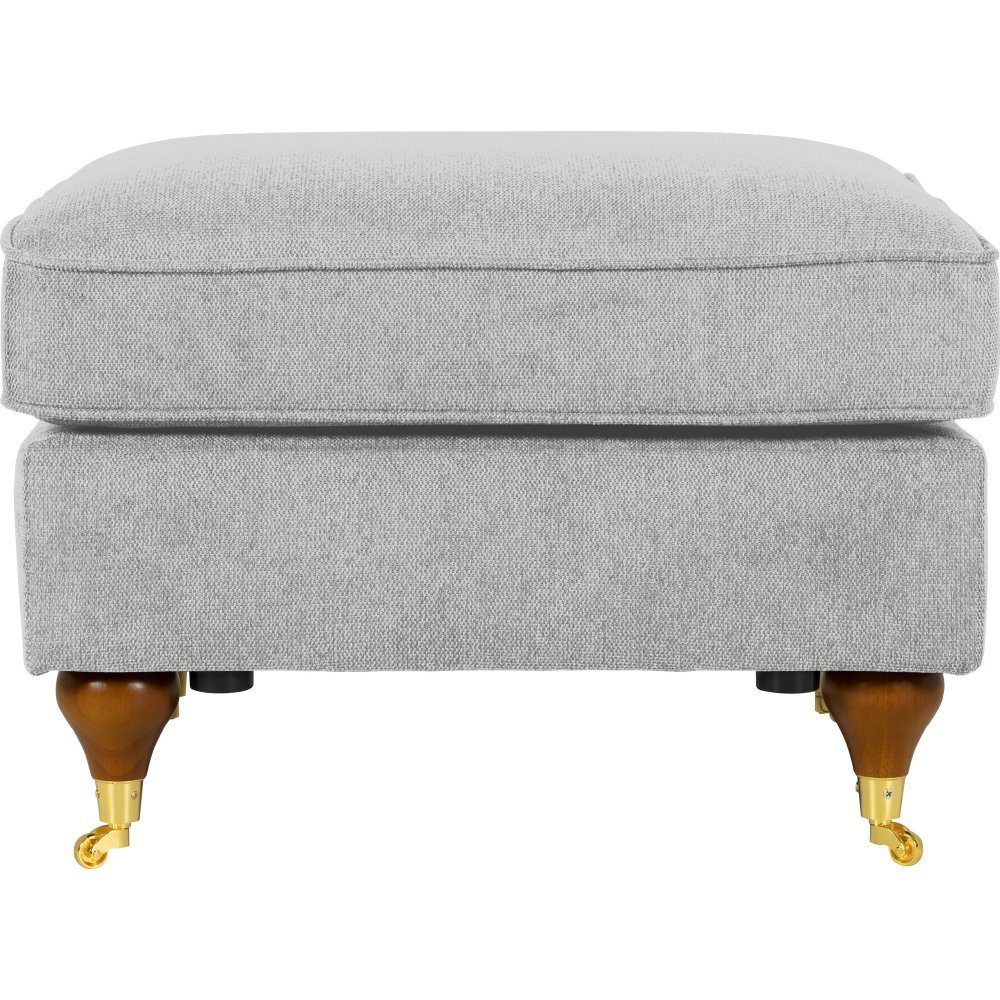 Der Hocker kommt in einer grauen und stilvollen Polsterung, die in jedes Zuhause passt.
