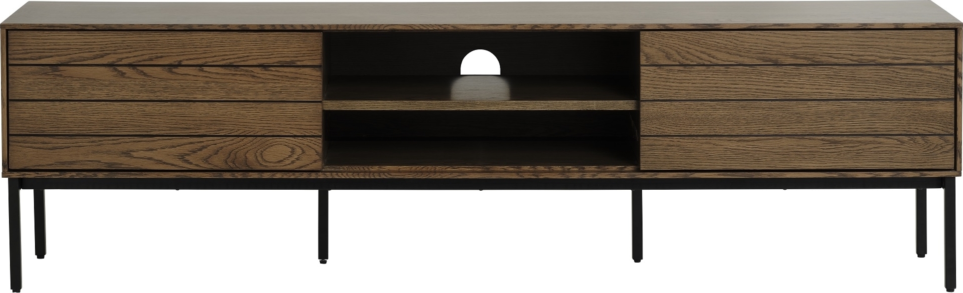 Inez TV-Bank aus braun geölter Eiche. Türen zum Öffnen, verstellbarer Einlegeboden.