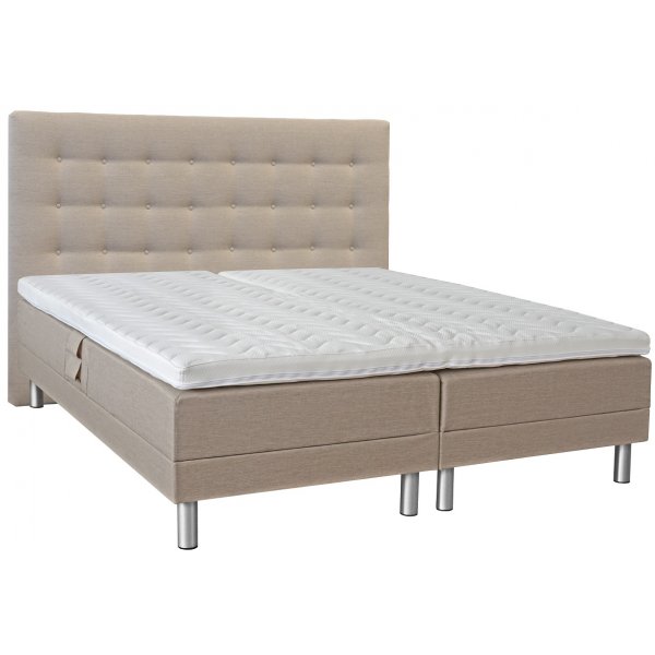 Komplettes Doppelbett mit zugehörigem Kopfteil. Verstellbares Motorbett Komfort mit hoher Qualität dank Linak-Motor und starkem Rahmen. Wir liefern das Bett mit einer luxuriösen, gesteppten und bequemen Bettmatratze aus Polyether. Der Matratzenbezug kann abgenommen und chemisch gereinigt werden. Die Bettmatratze hat eingebaute Luftkanäle, die für eine bessere Zirkulation und einen besseren Schlaf sorgen. Das Bett hat ein flexibles Taschenfederkernsystem, das einen angenehmen Komfort für den Körper bietet. Der keilgezinkte Bodenrahmen ist 12 cm hoch und aus europäischer Kiefer gefertigt.