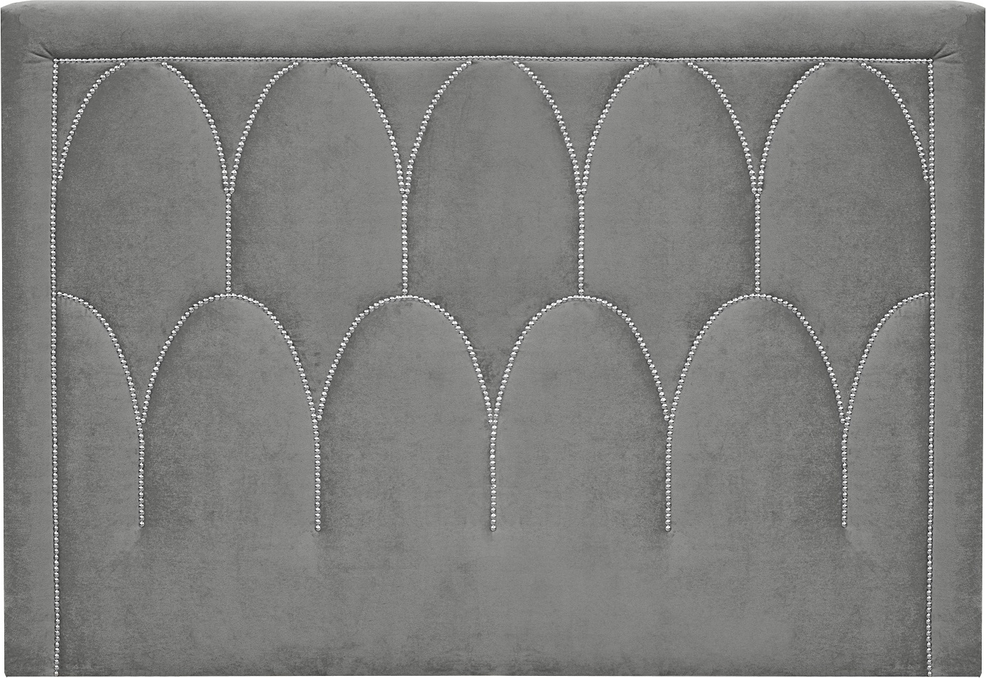 Mit dem Dalarö Kopfteil können Sie die Breite Ihres Bettes wählen. Das Kopfteil ist mit einem weichen, grauen Samtstoff mit exklusivem Nietenmuster gepolstert. Stilvolles Design, das Ihrem Schlafzimmer einen luxuriösen Touch verleiht.