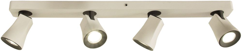 Strahler aus weißem und grauem Metall. Einfach an der Decke zu montieren.