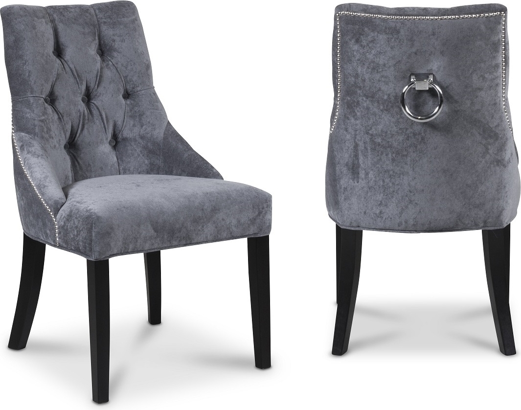 Tuva Europa - Esszimmerstuhl mit Griffen (Samt grau/schwarz)